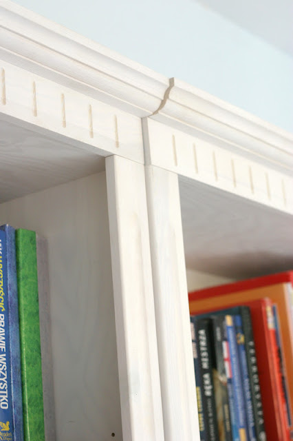 Taki regał własnej roboty odpadał, bo sama nie umiem, a mąż nie okazał zainteresowania i chęci do współpracy:), poza tym w naszych warunkach lokalowych ciężko byłoby taki mebel samemu zrobić, złożyć itd. Pomyślałam o kupnie jakiegoś najprostszego zwykłego białego regału, np. Billy z Ikei i "ztuningowaniu" go:), czyli dorobieniu pleców z boazerii i doklejeniu drewnianych dekorów.