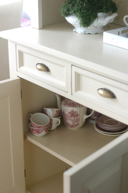 Kredens jest bardzo pojemny, zmieściłam w nim wszystkie swoje skorupy i cały arsenał serwet, serwetek, obrusów i podkładek.