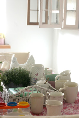 Cały weekend upłynął mi na ustawianiu kubków, miseczek, filiżanek, na myciu i przenoszeniu z kuchni nieużywanej zastawy ślubnej...:) Przy okazji wysprzątaliśmy z Pawłem szafki kuchenne, wymyliśmy je w środku i na zewnątrz. No niemal jak wielkanocne porządki...