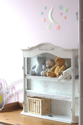A witryna i biureczko póki co znalazły miejsce u Weroniki, docelowo zawiozę je do mojej mamy. Witrynę chciałabym zawiesić w kuchni nad stołem zamiast półki.