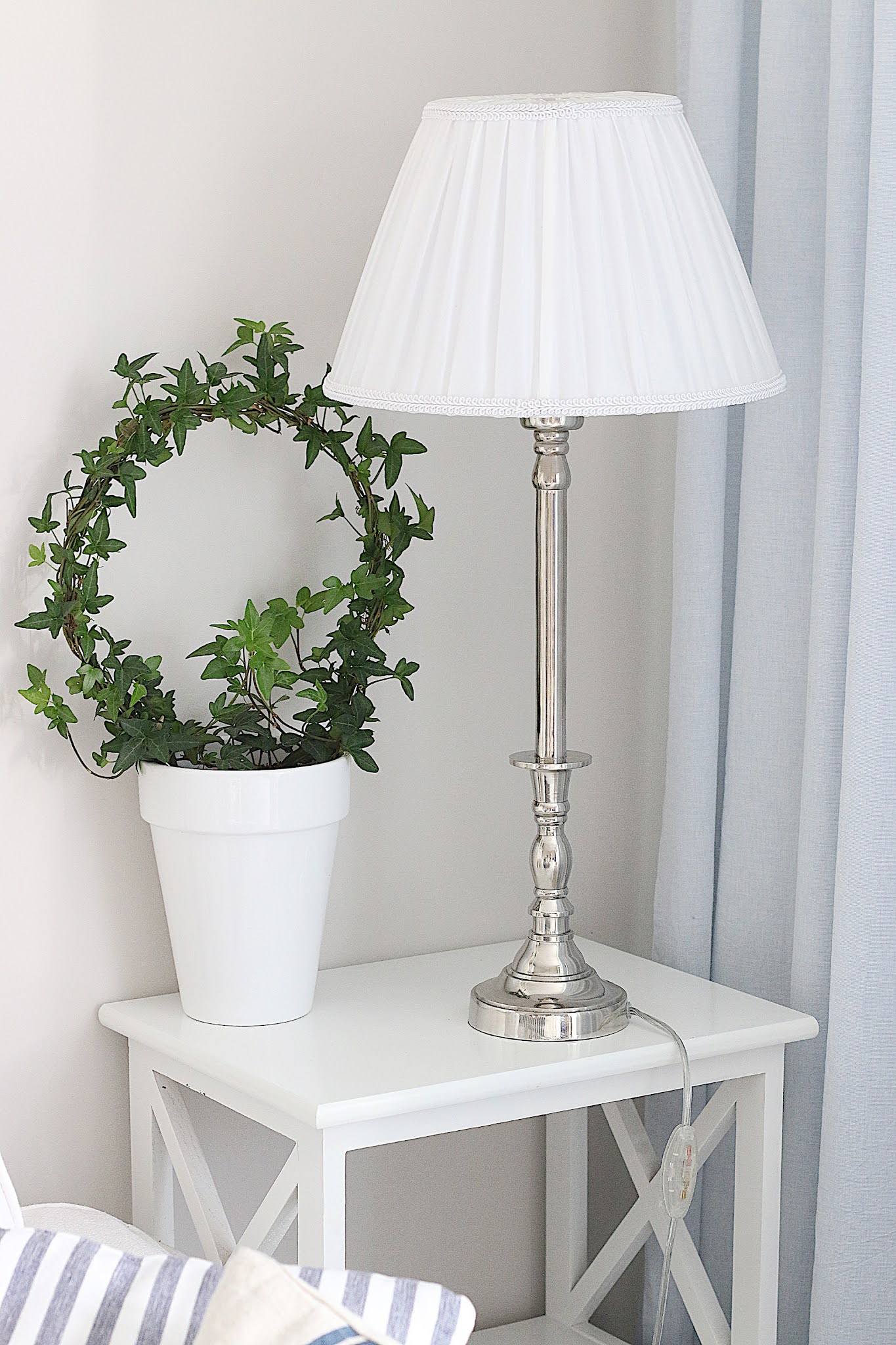 Na razie rządzą w salonie błękity i biel, to taka letnia kolorystyka, ale chciałabym na zmianę jakieś lniane lub lnianopodobne zasłony:)