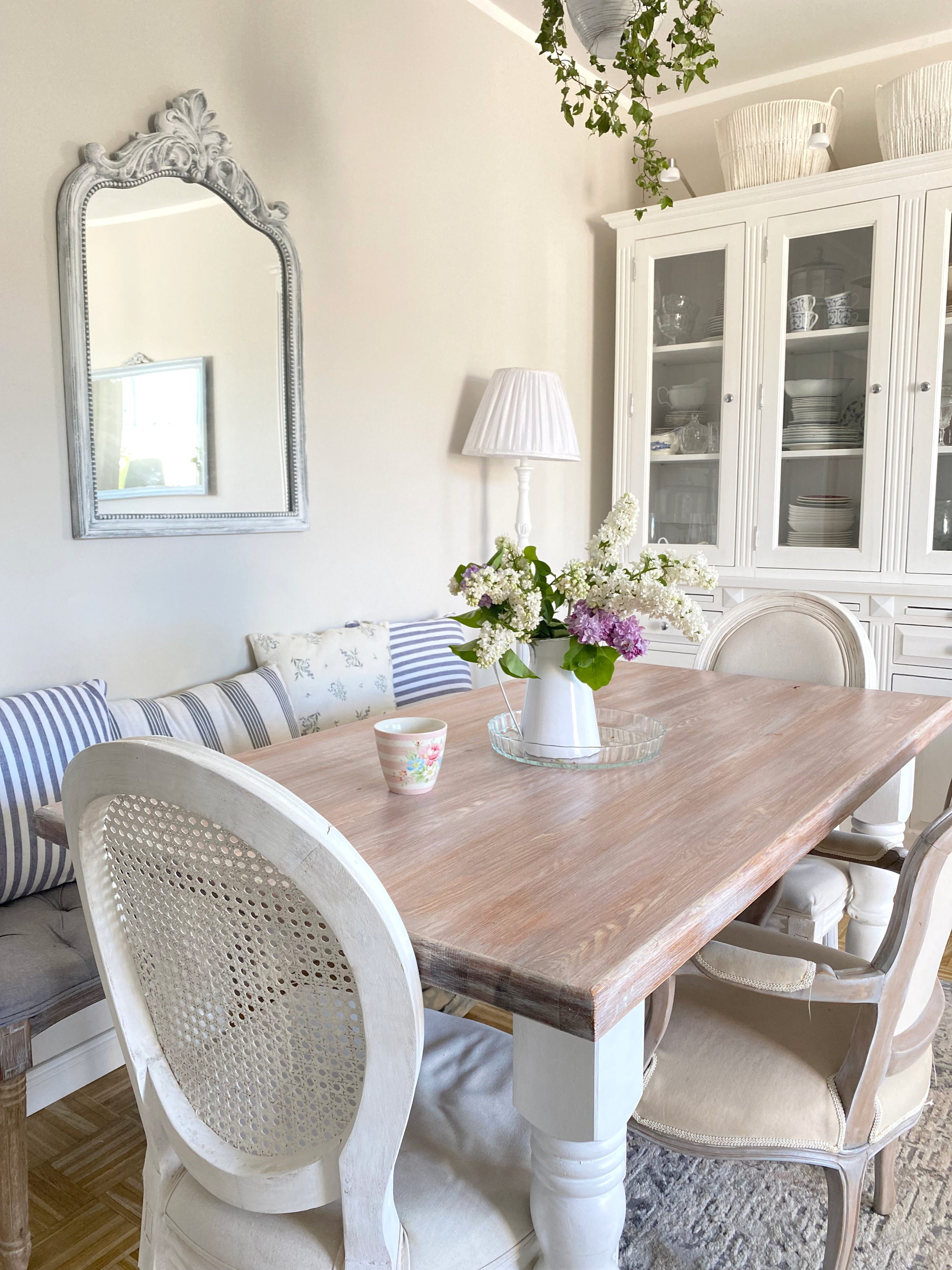W salonie jak widać bez fajerwerków i zmian:) Przez to, że większość wolnego czasu spędzam na działce lub chociaż balkonie, to nie mam głowy, do jakiś nowych aranżacji i zmian. Ale od jakiegoś czasu mocno chodzi mi po głowie zmiana stołu;) Ten, który mamy jest z nami już jakieś 15 lat i chociaż jest ładny, masywny, dębowy, to po prostu mi się opatrzył. Jest też trochę za mały, a nie jest rozkładany. Nie mam tylko pomysłu, co z nim zrobić;) Rozmyślam o zmianie aranżacji całego tego kąta jadalnego w naszym salonie, na coś chyba bardziej prostego, coś mi tam już kiełkuje, ale chyba jeszcze potrzebuję czasu, żeby do tego dojrzeć;)